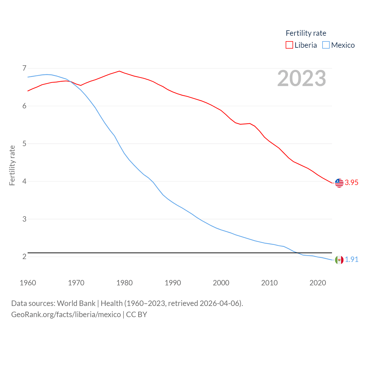 - World Bank | Health (1960–2025, retrieved 2026-04-06)