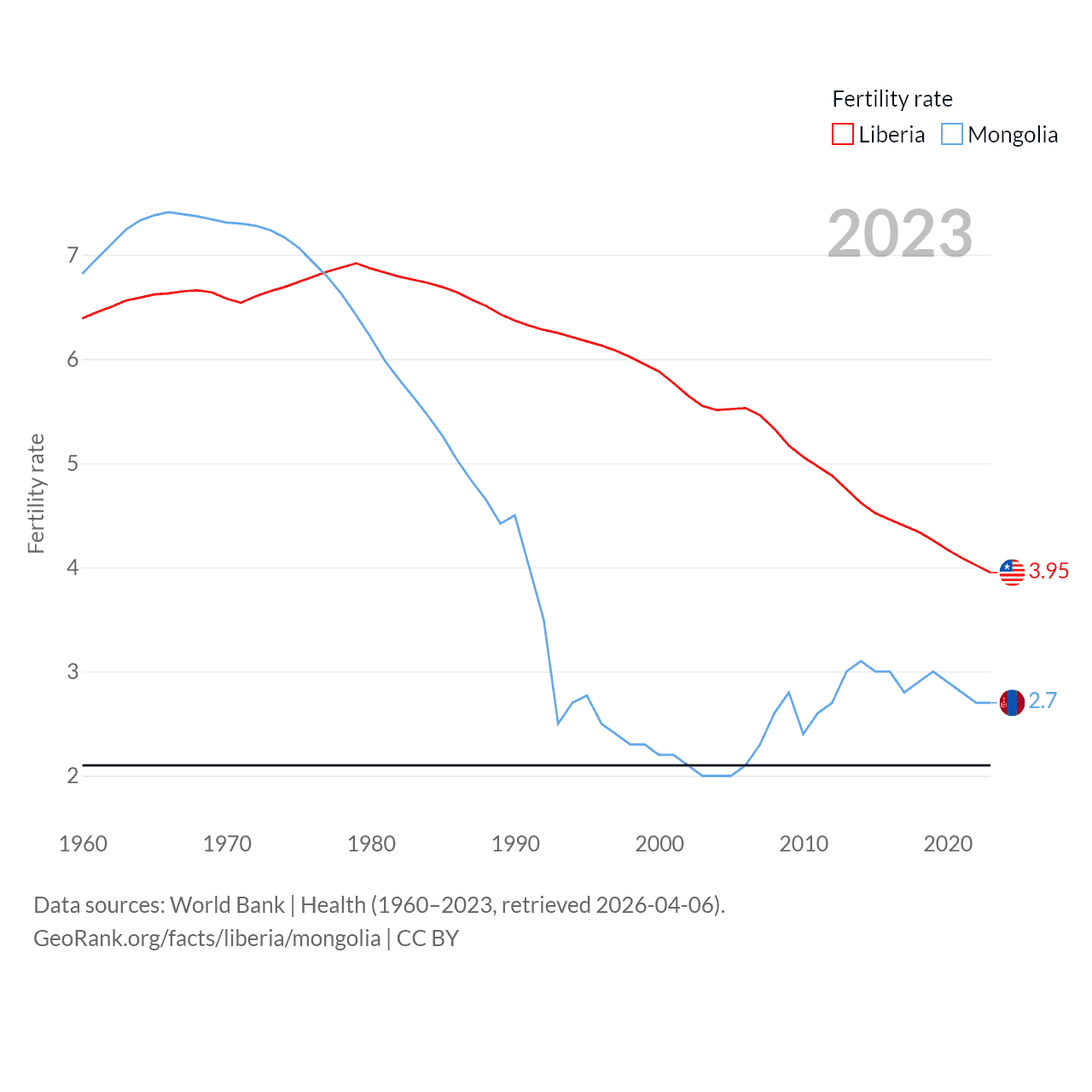 - World Bank | Health (1960–2025, retrieved 2026-04-06)
