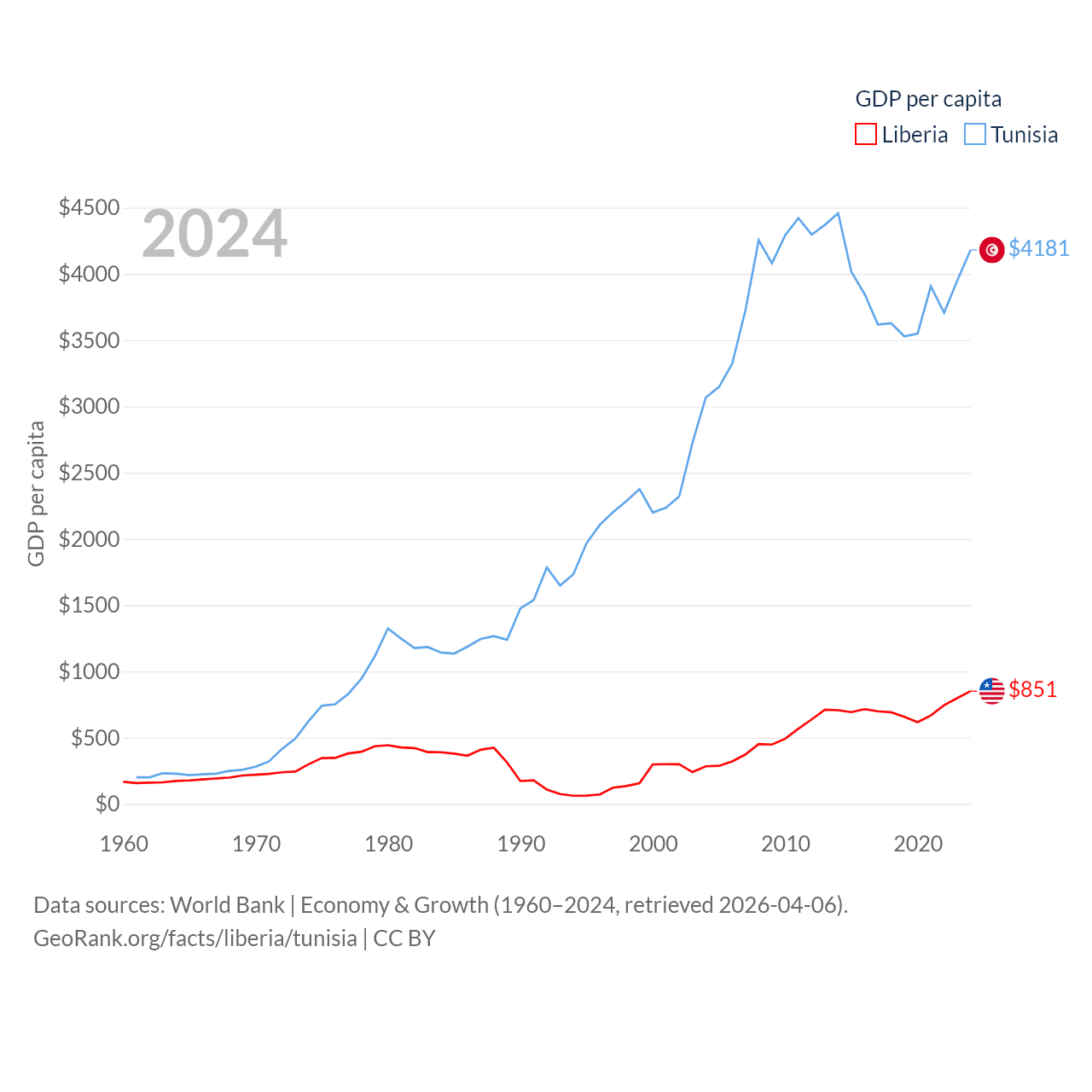 Liberia and Tunisia economies compared