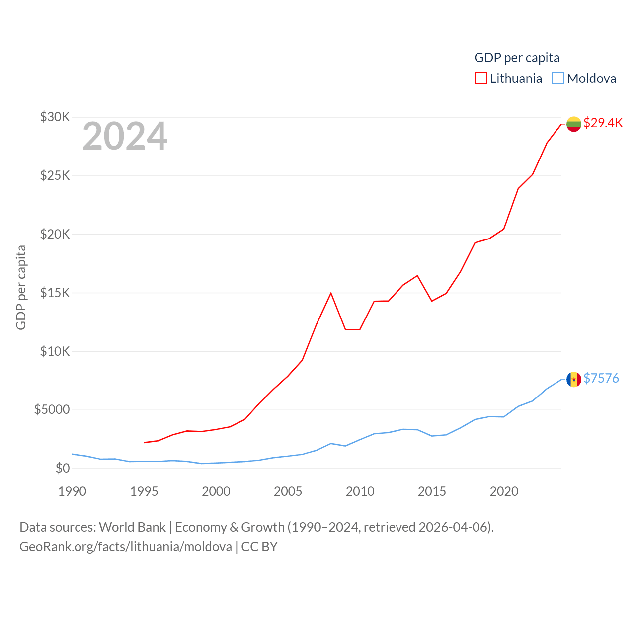Data sources: World Bank | Economy & Growth (1990–2024, retrieved 2026-04-06).