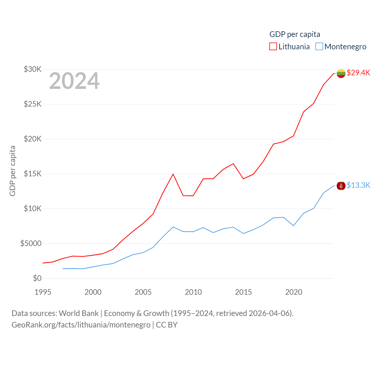 Data sources: World Bank | Economy & Growth (1995–2024, retrieved 2026-04-06).
