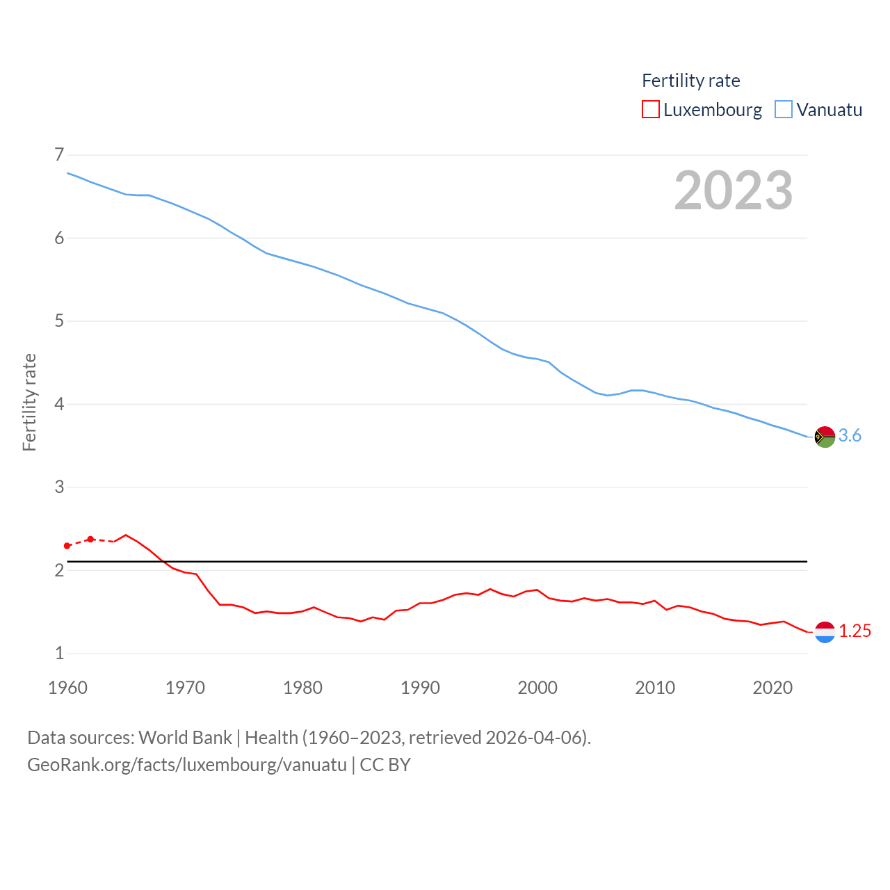 Luxembourg and Vanuatu: Comparison Charts