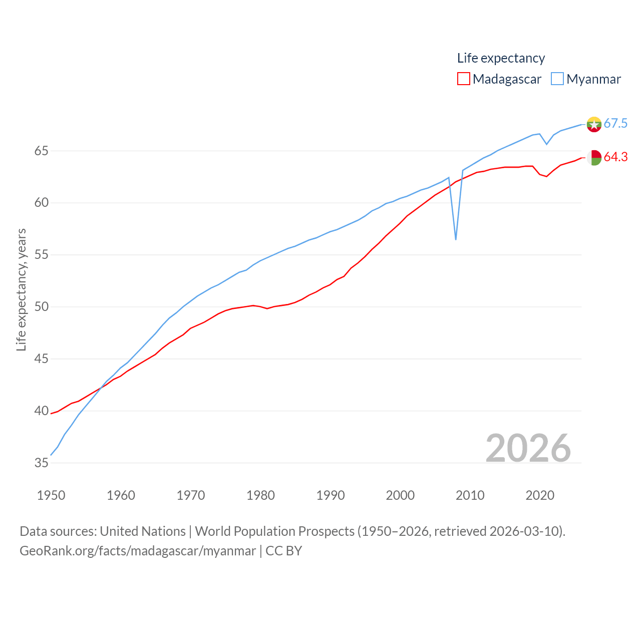 - United Nations | World Population Prospects (1950–2026, retrieved 2026-03-10)