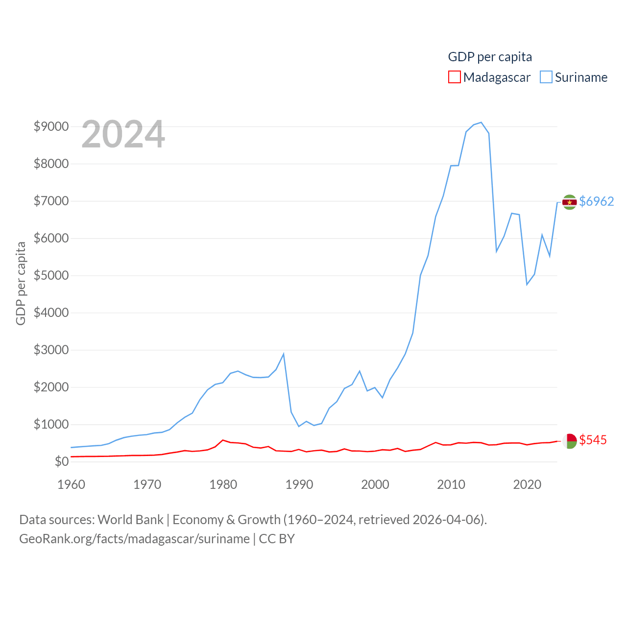 Madagascar and Suriname economies compared