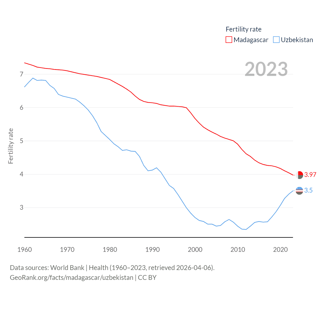 - World Bank | Health (1960–2025, retrieved 2026-04-06)
