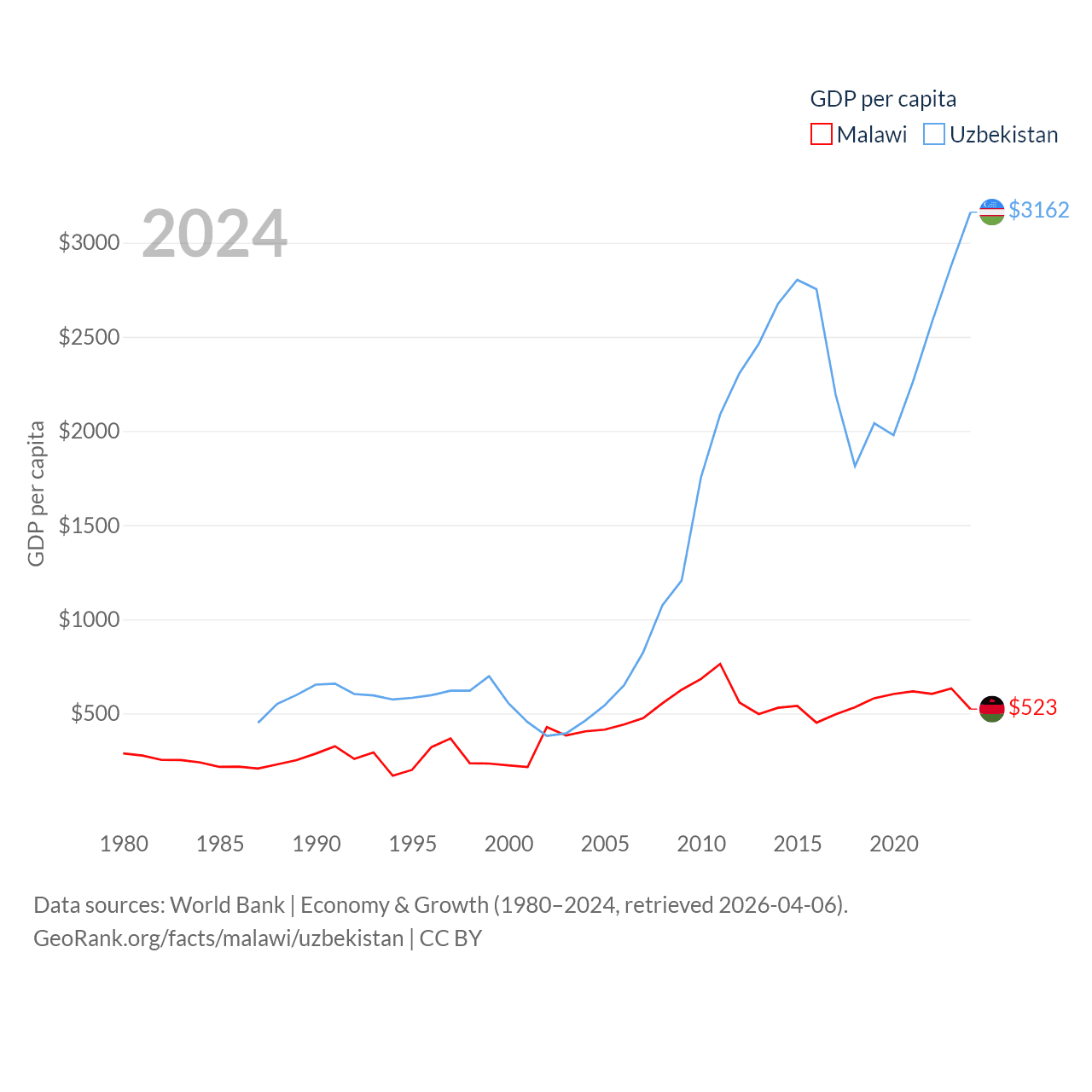 Data sources: World Bank | Economy & Growth (1980–2024, retrieved 2026-04-06).