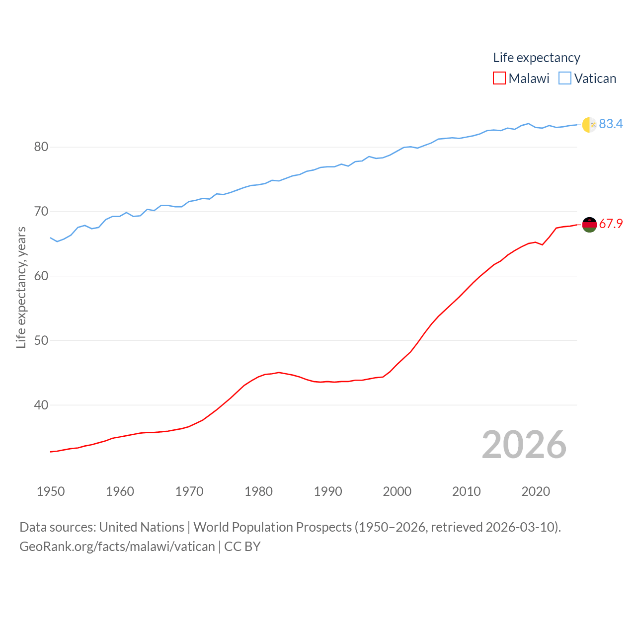 Malawi vs. Vatican life expectancy calculator