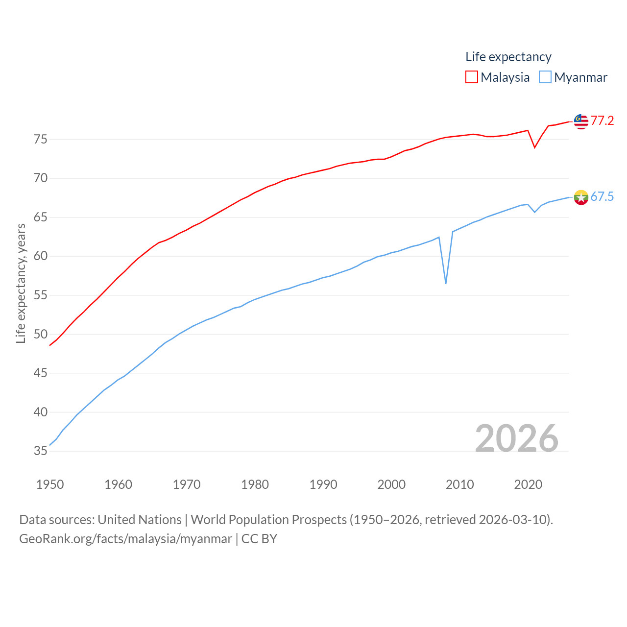 - United Nations | World Population Prospects (1950–2026, retrieved 2026-03-10)