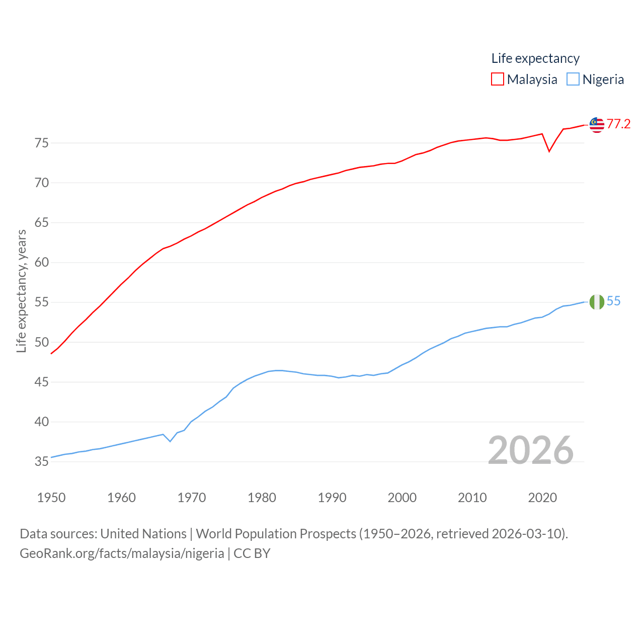 - United Nations | World Population Prospects (1950–2026, retrieved 2026-03-10)