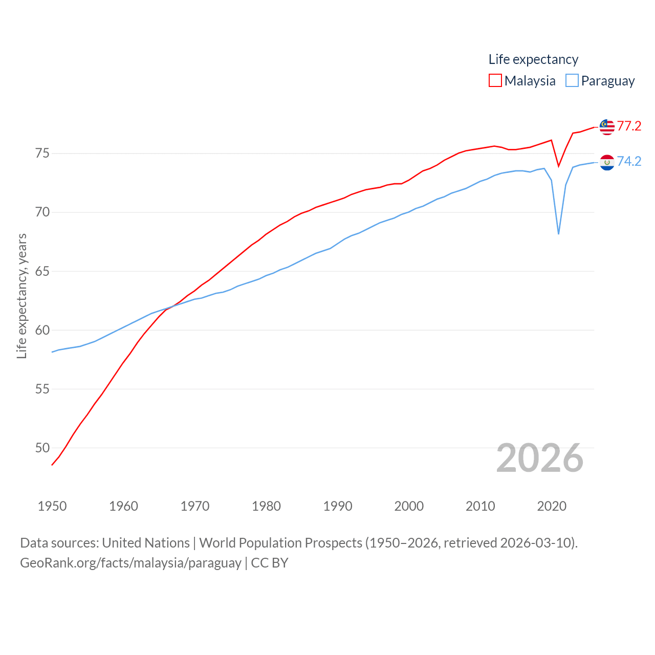 - United Nations | World Population Prospects (1950–2026, retrieved 2026-03-10)