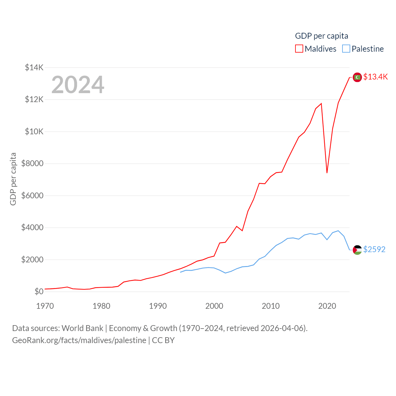 Maldives and Palestine economies compared