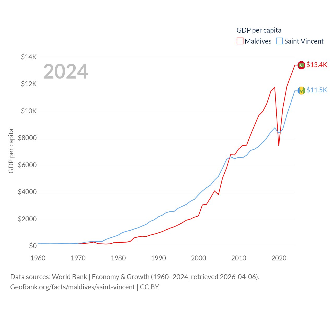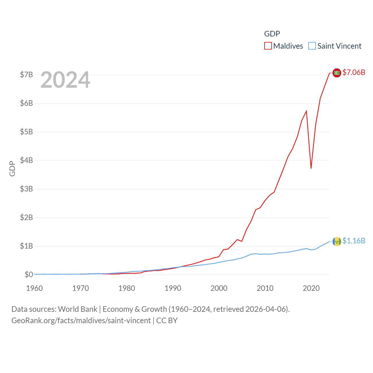 Maldives and Saint Vincent economies compared