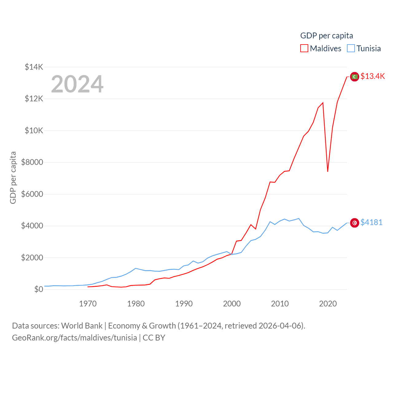 Maldives and Tunisia economies compared