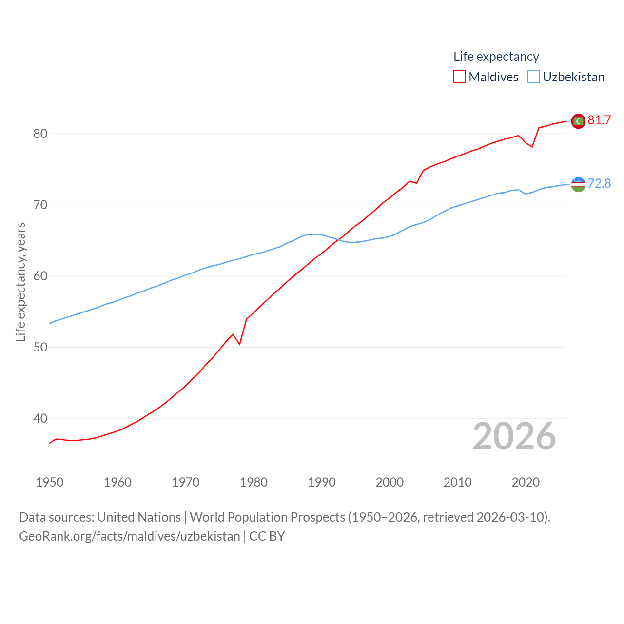- United Nations | World Population Prospects (1950–2026, retrieved 2026-03-10)