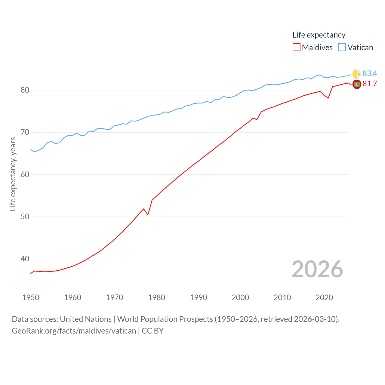 Maldives vs. Vatican life expectancy calculator