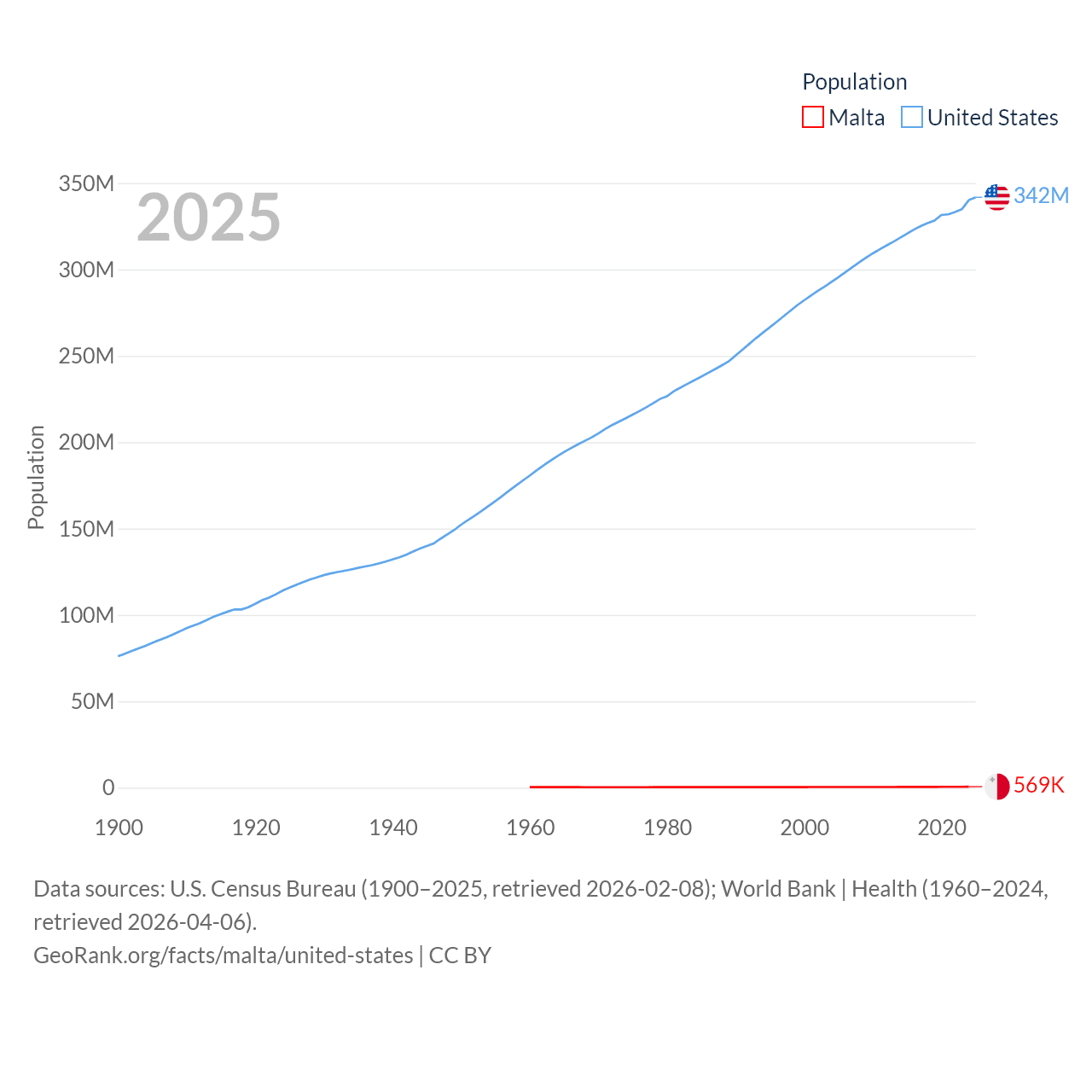 - U.S. Census Bureau (1900–2025, retrieved 2026-02-08)