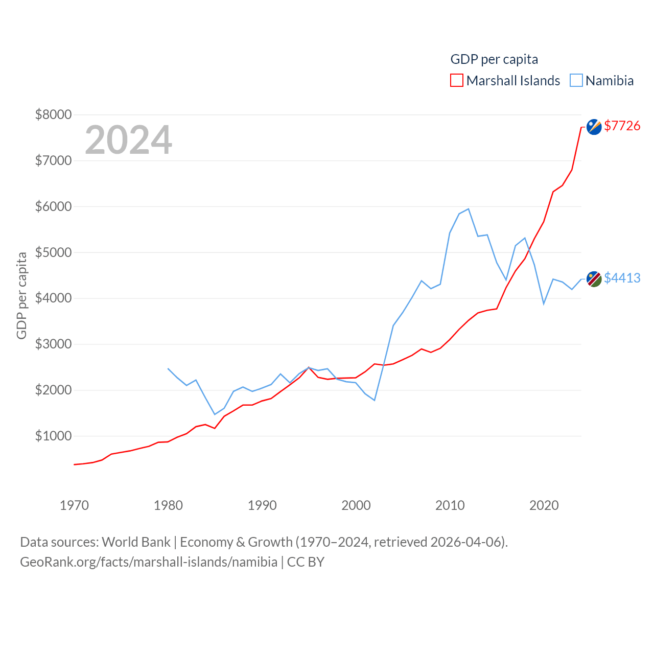 Marshall Islands and Namibia economies compared