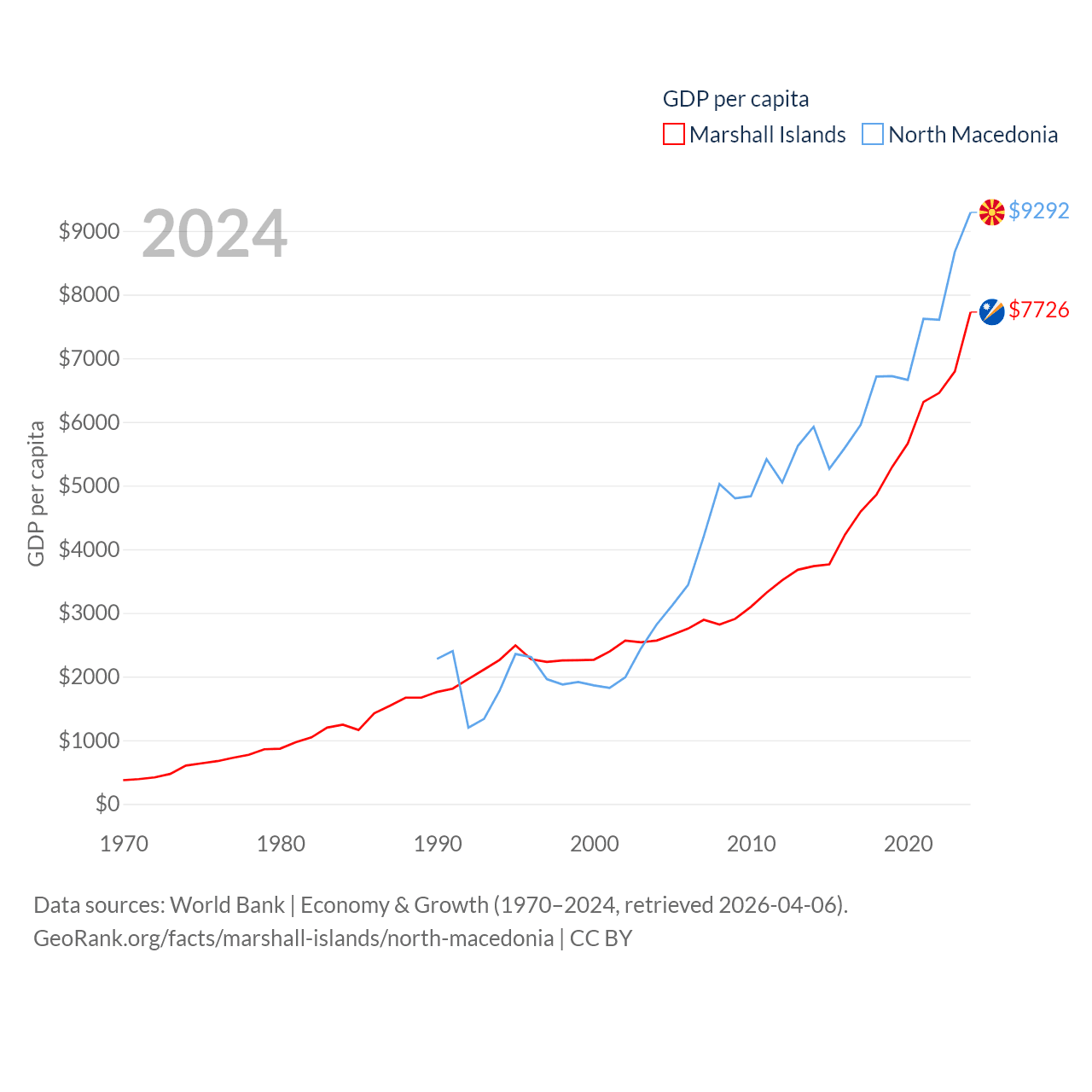 Marshall Islands and North Macedonia economies compared