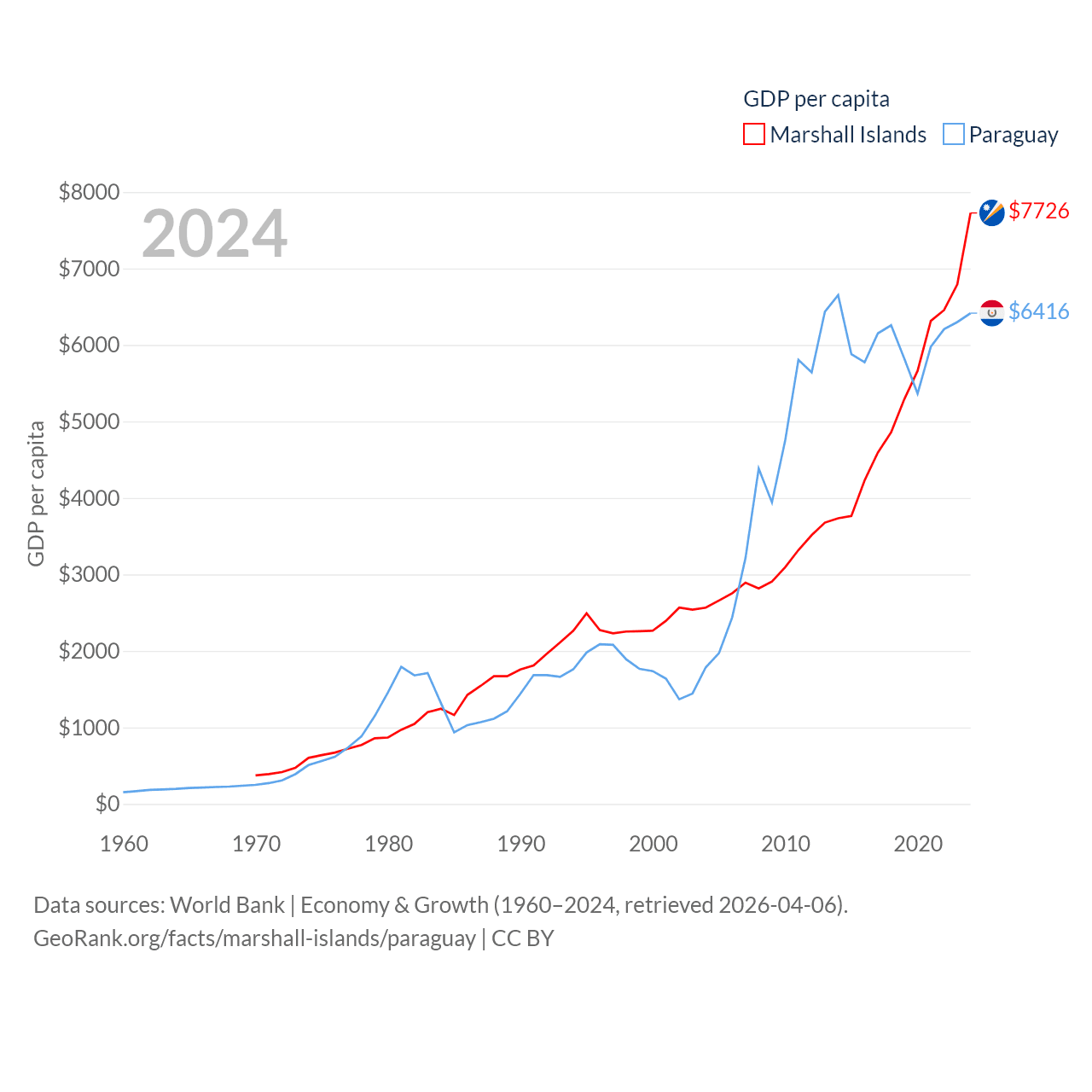 Marshall Islands and Paraguay economies compared