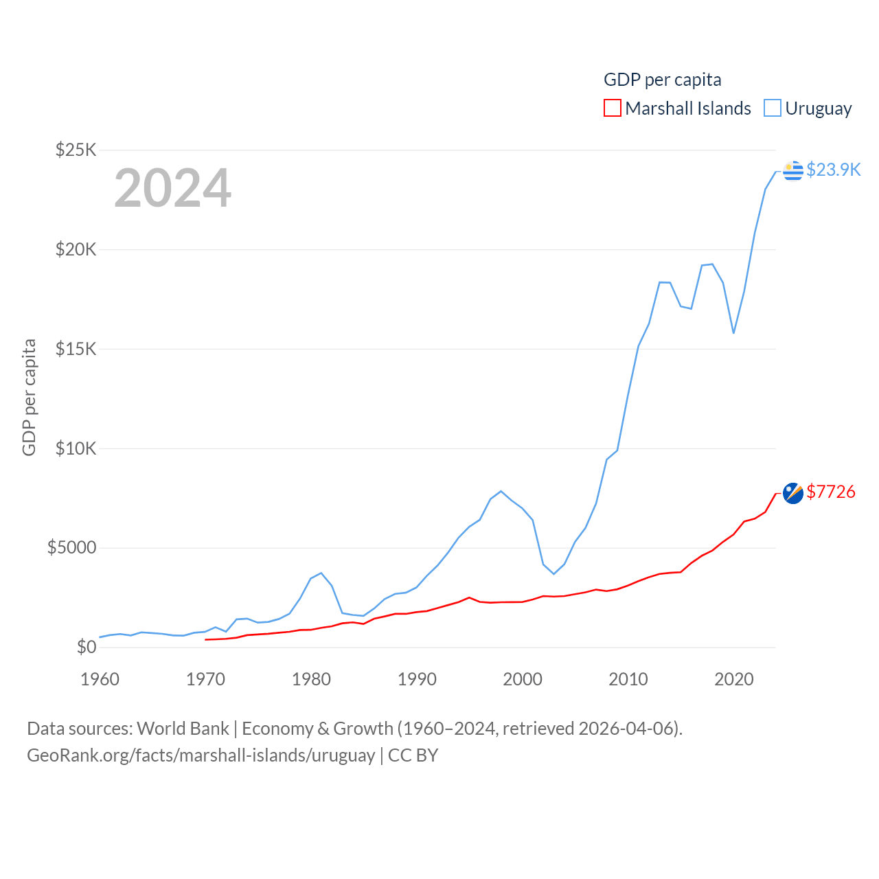 Marshall Islands and Uruguay economies compared