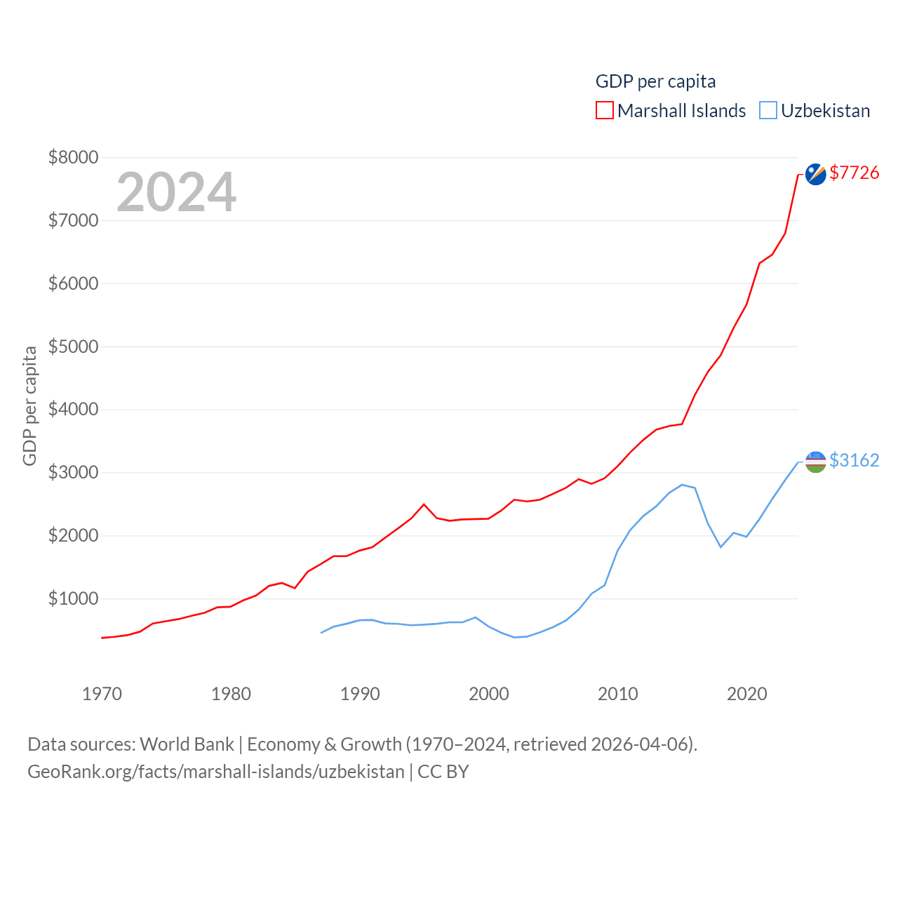 Marshall Islands and Uzbekistan economies compared