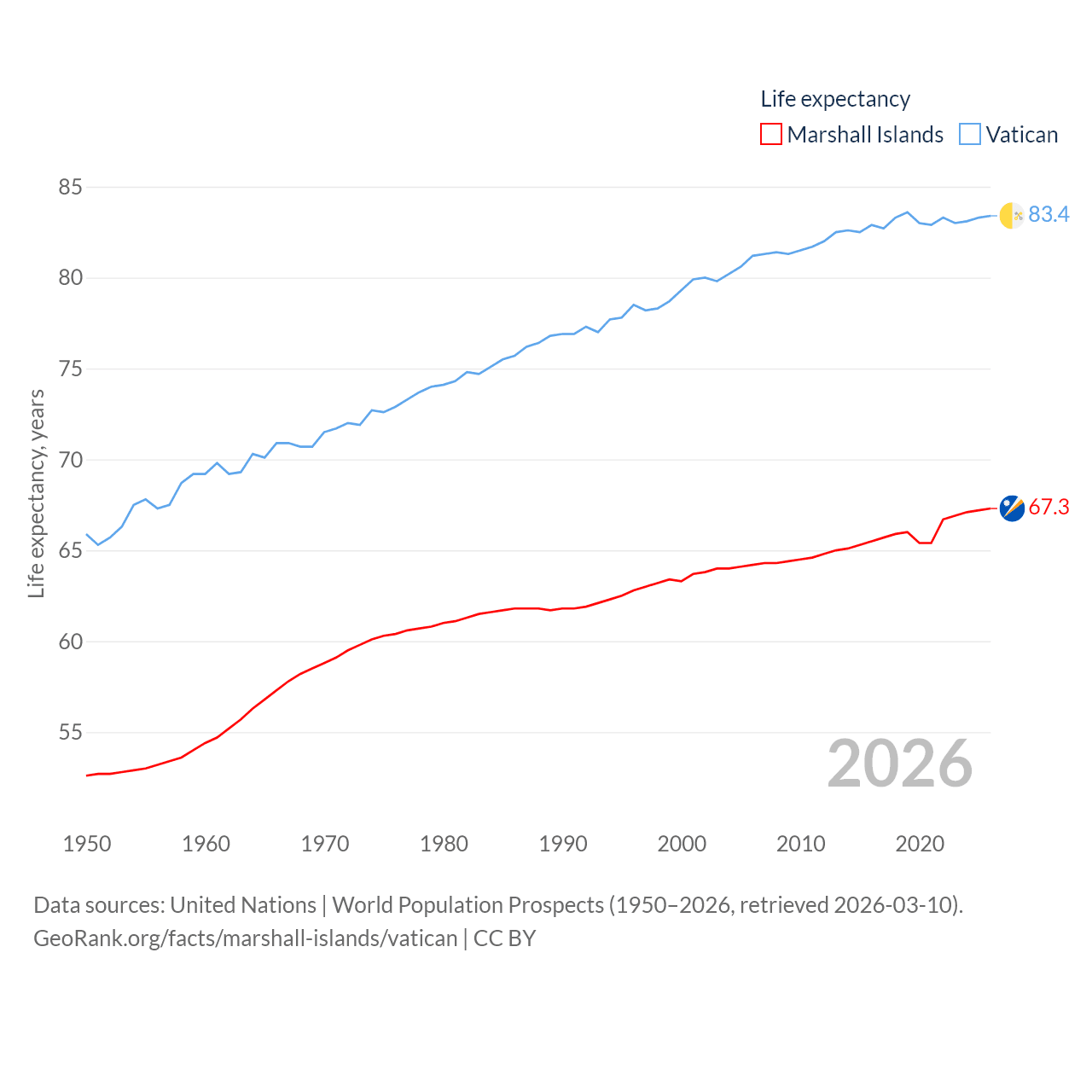 Marshall Islands vs. Vatican life expectancy calculator