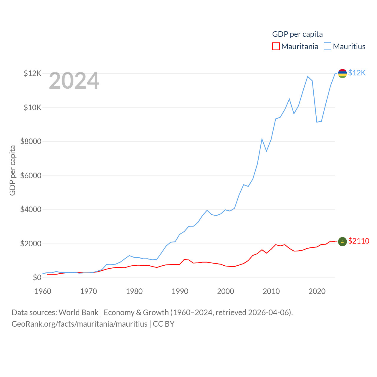 Mauritania and Mauritius economies compared
