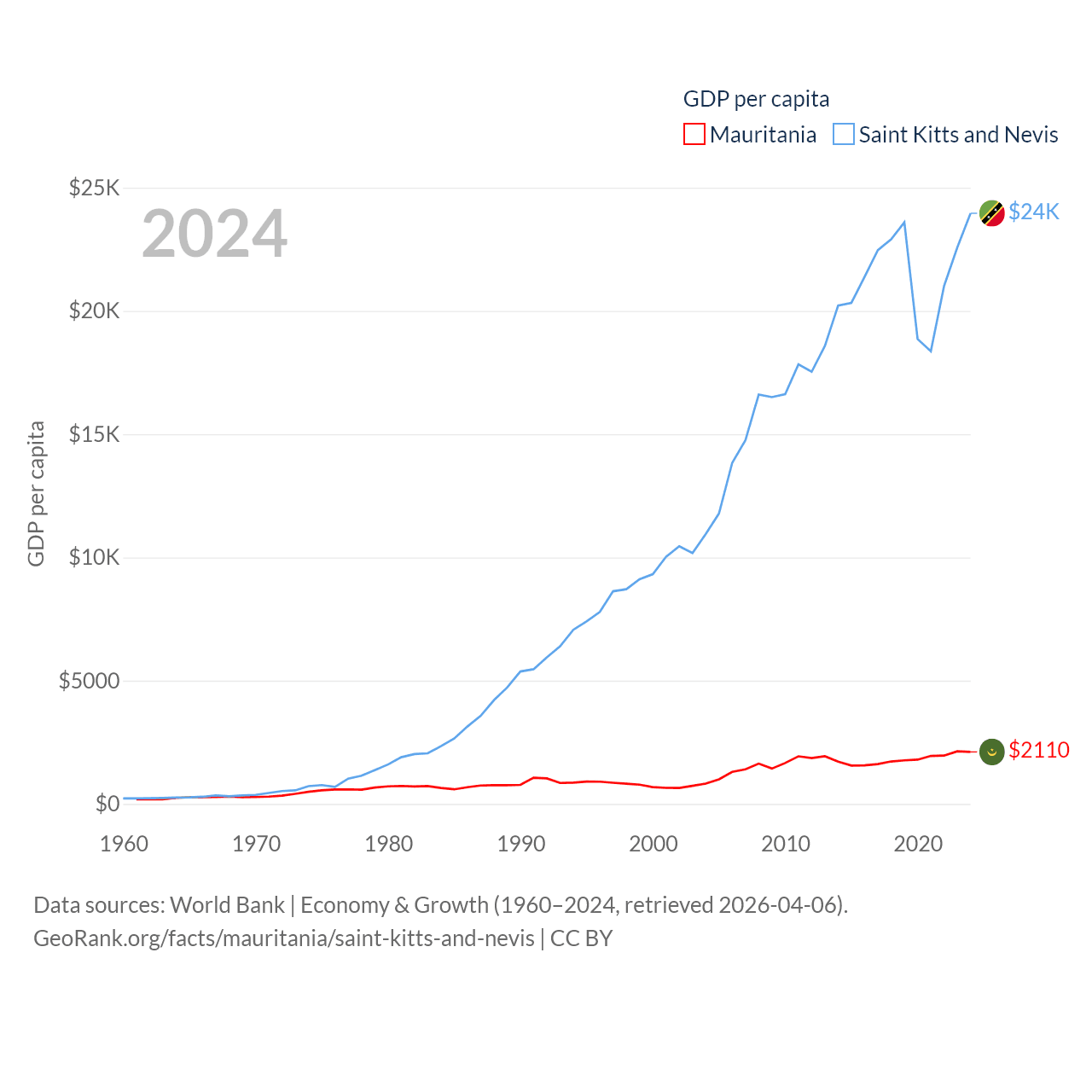 Mauritania and Saint Kitts and Nevis economies compared