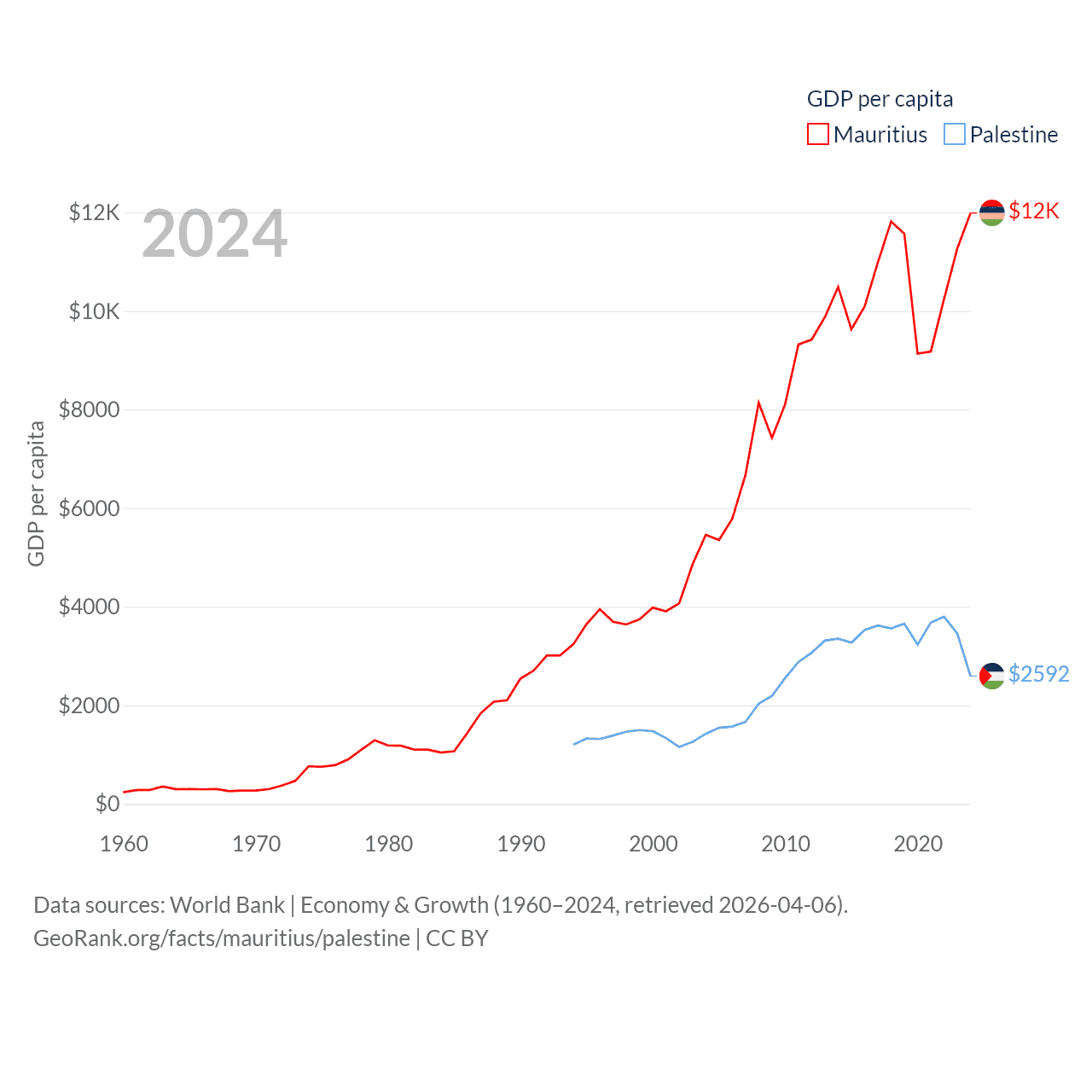 Mauritius and Palestine economies compared
