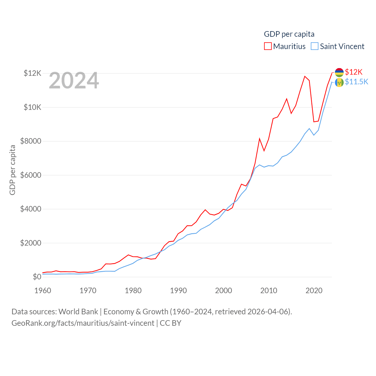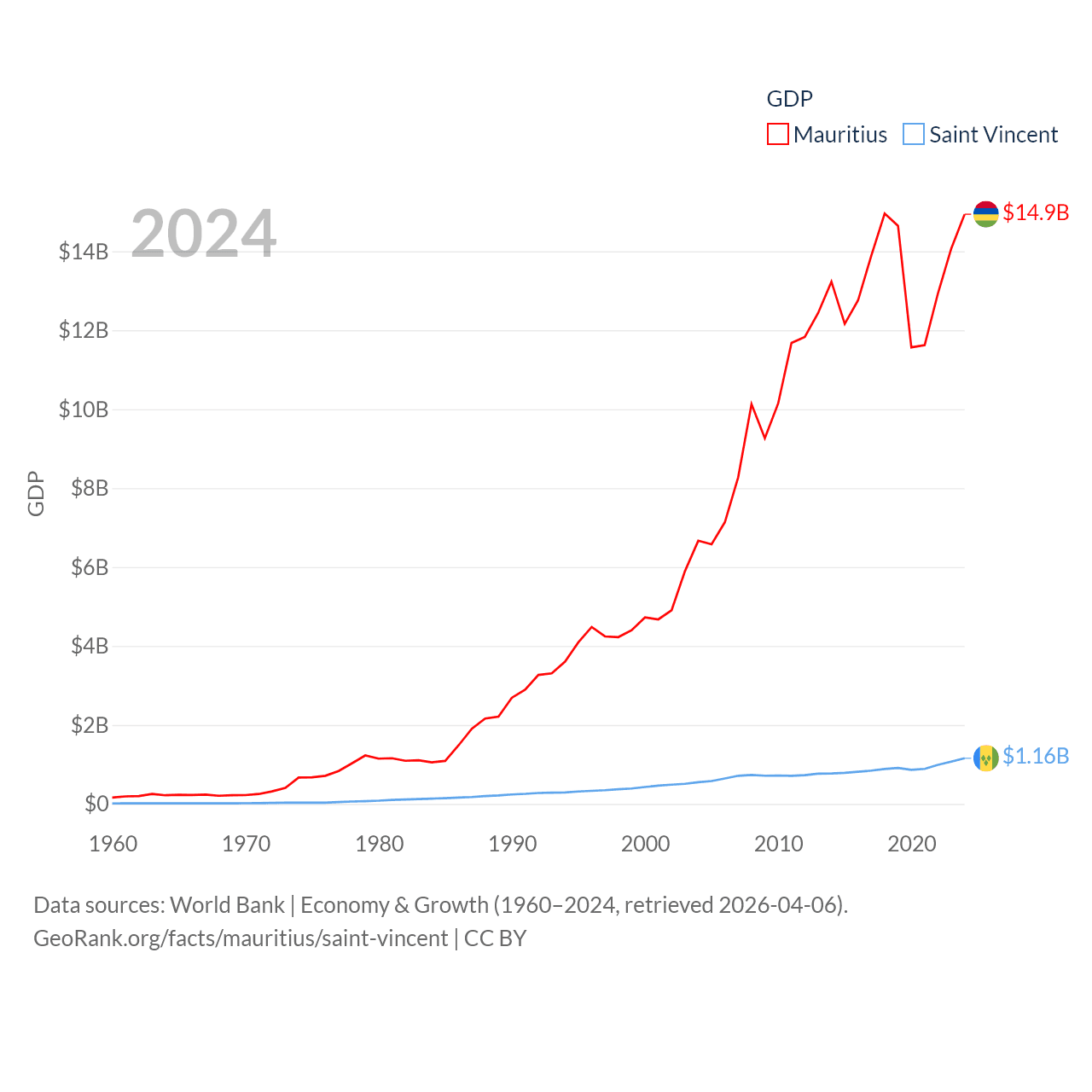Mauritius and Saint Vincent economies compared