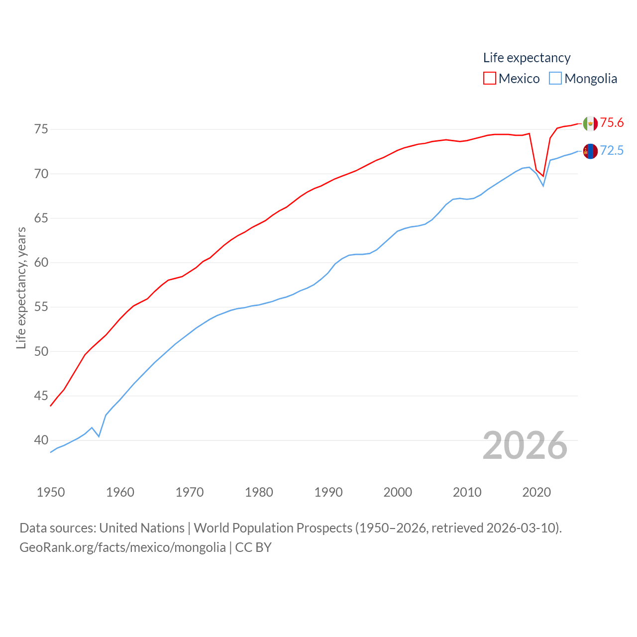 - United Nations | World Population Prospects (1950–2026, retrieved 2026-03-10)