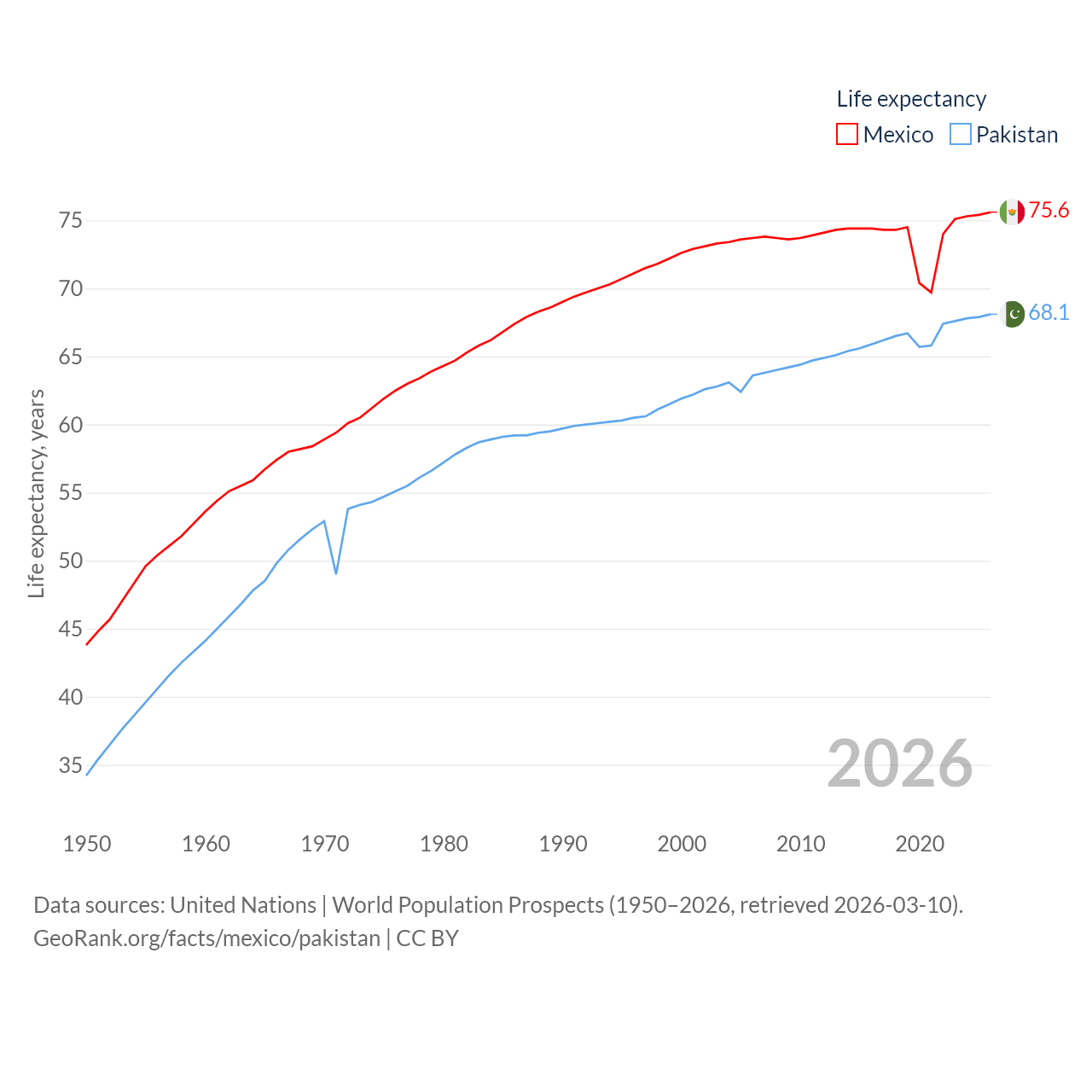 - United Nations | World Population Prospects (1950–2026, retrieved 2026-03-10)