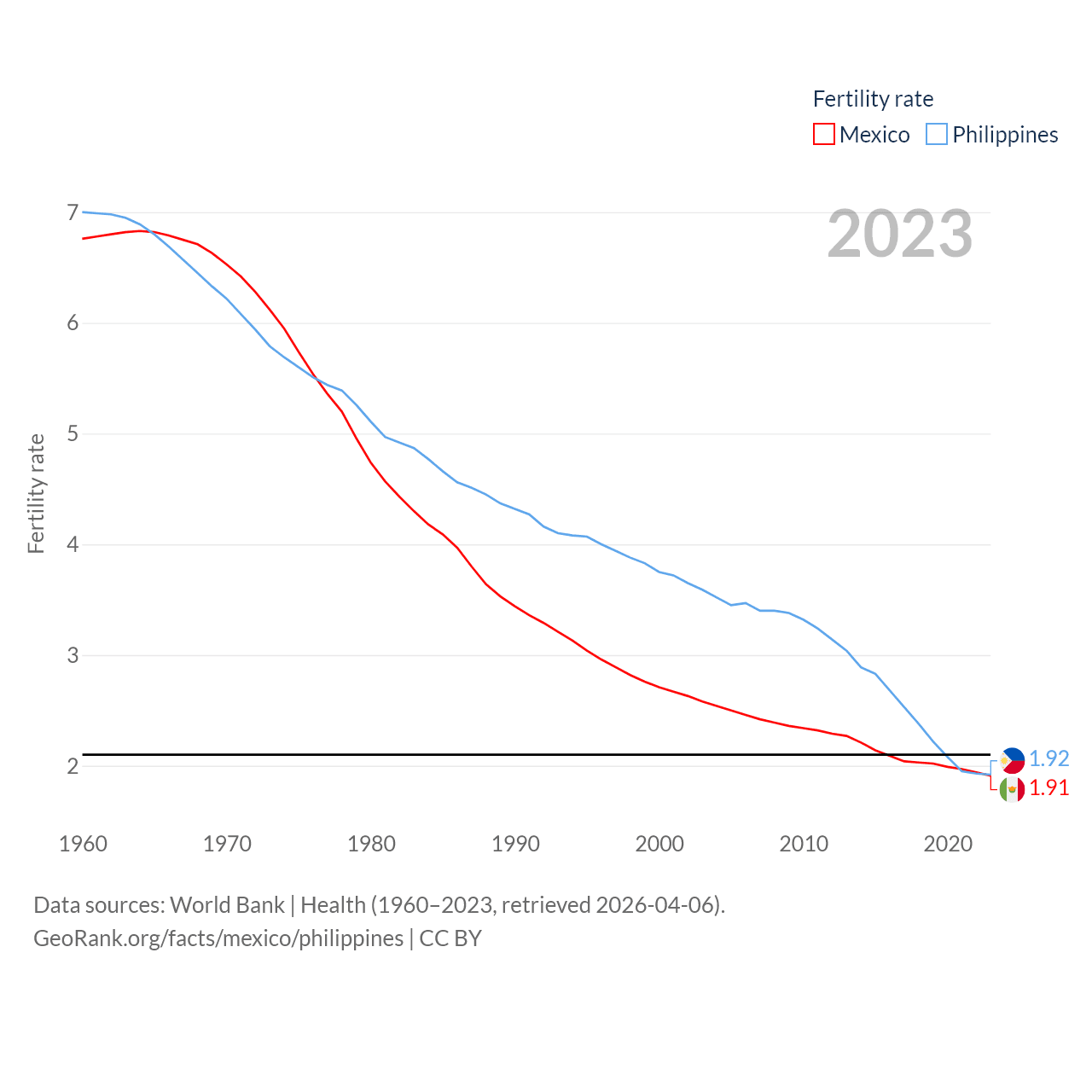 - World Bank | Health (1960–2025, retrieved 2026-04-06)