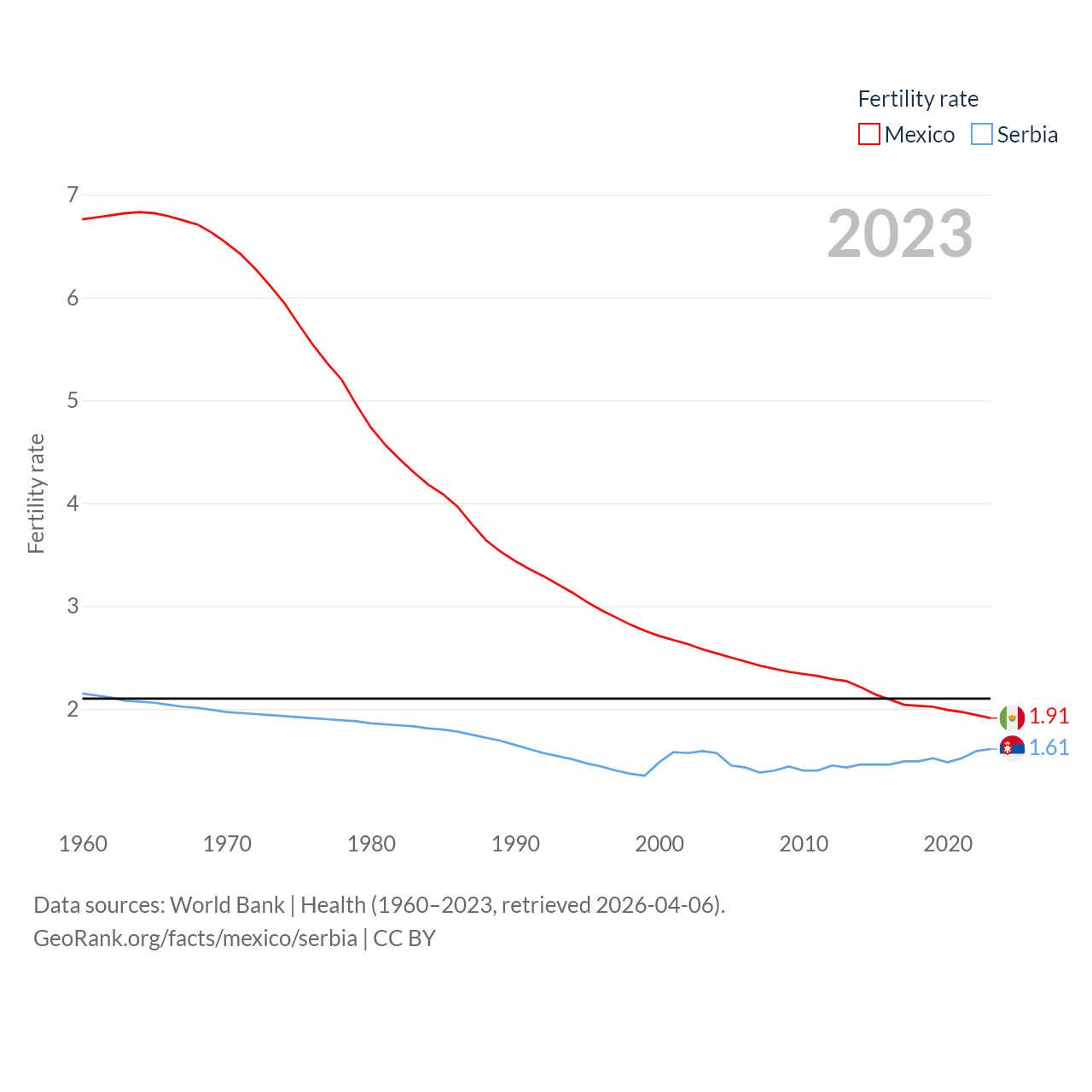 - World Bank | Health (1960–2025, retrieved 2026-04-06)