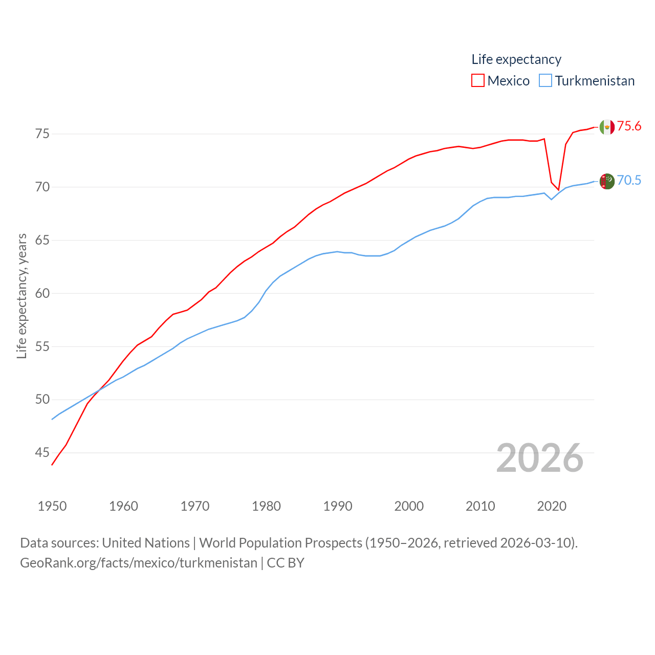 - United Nations | World Population Prospects (1950–2026, retrieved 2026-03-10)