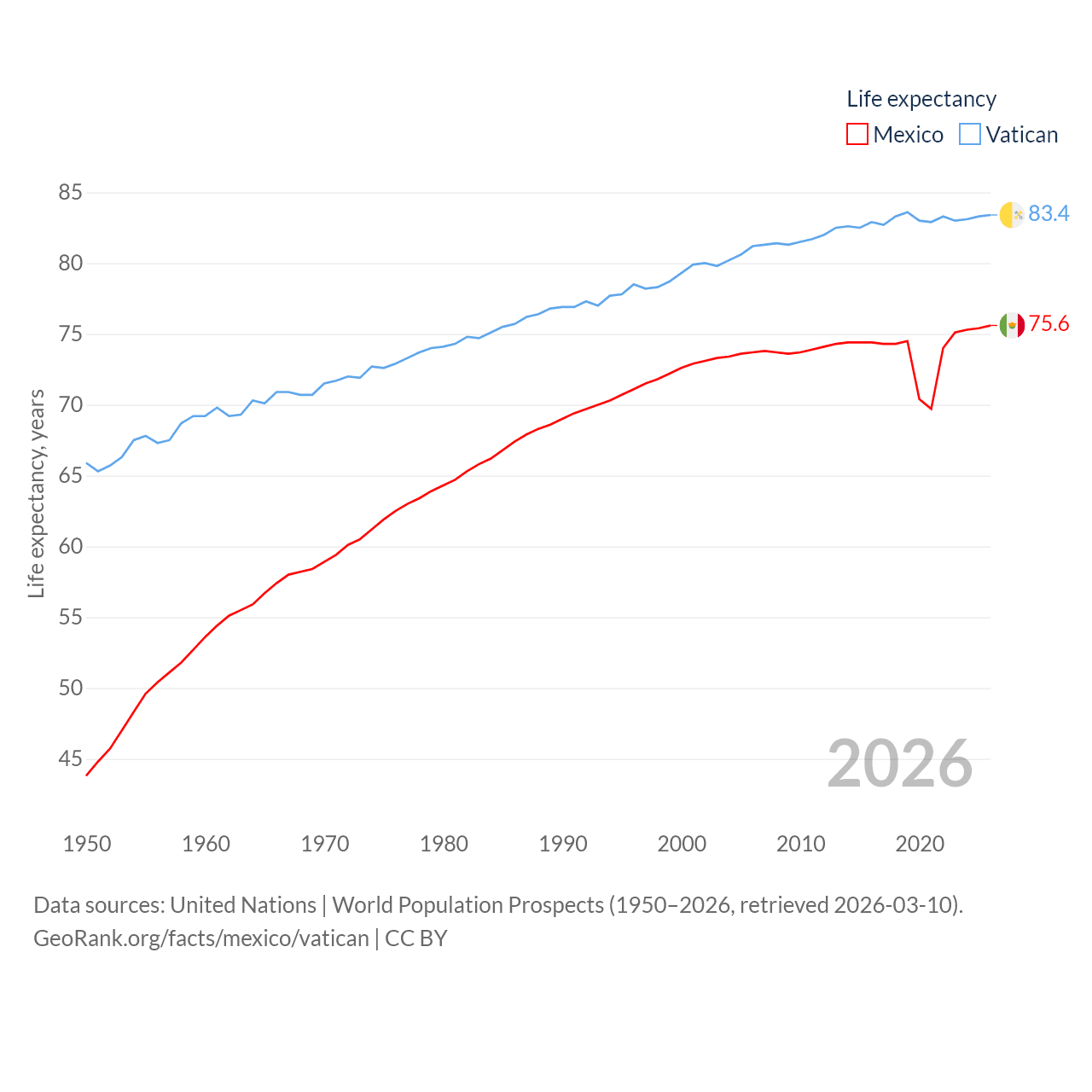 Mexico vs. Vatican life expectancy calculator
