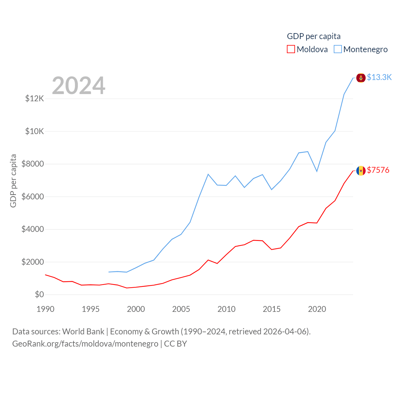 Data sources: World Bank | Economy & Growth (1990–2024, retrieved 2026-04-06).