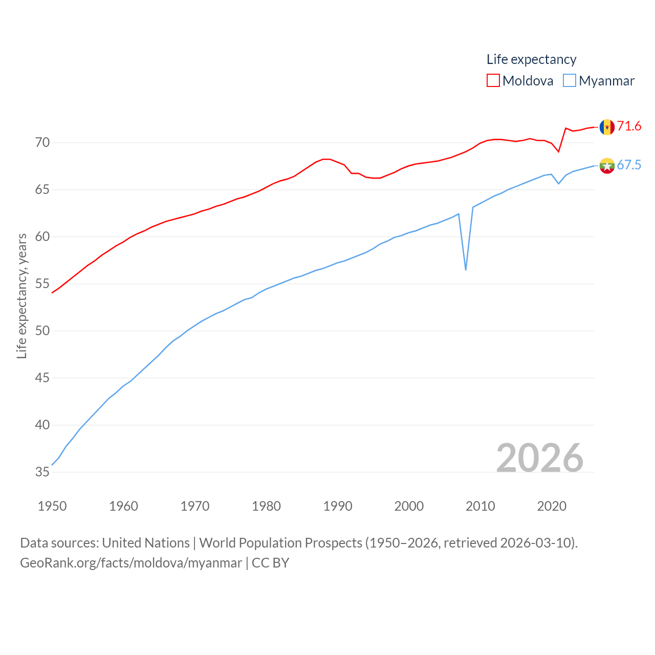 - United Nations | World Population Prospects (1950–2026, retrieved 2026-03-10)