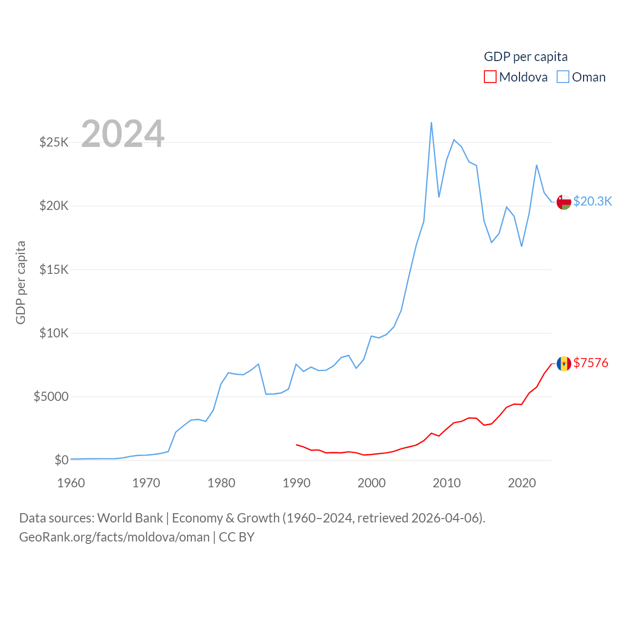 Moldova and Oman economies compared