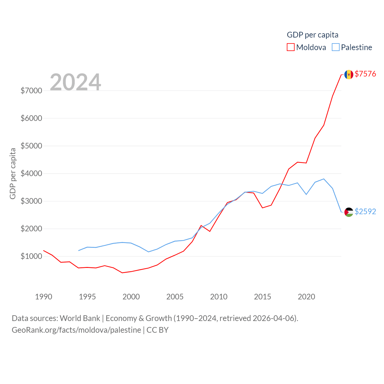 Data sources: World Bank | Economy & Growth (1990–2024, retrieved 2026-04-06).