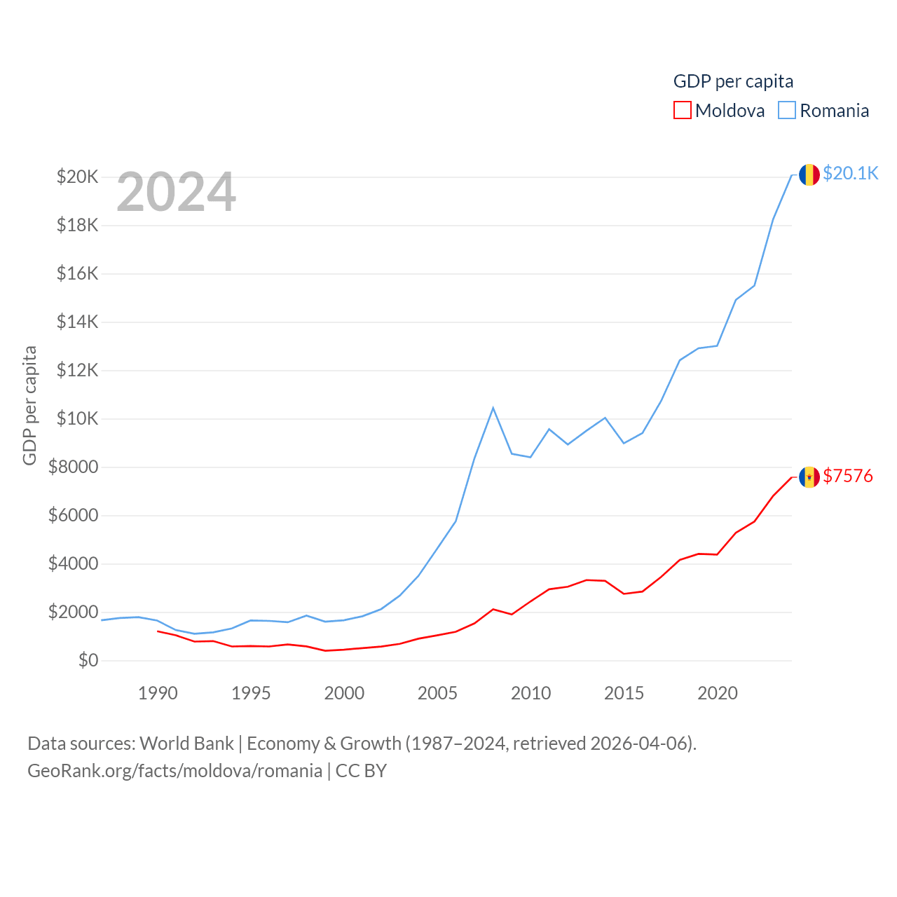Data sources: World Bank | Economy & Growth (1987–2024, retrieved 2026-04-06).