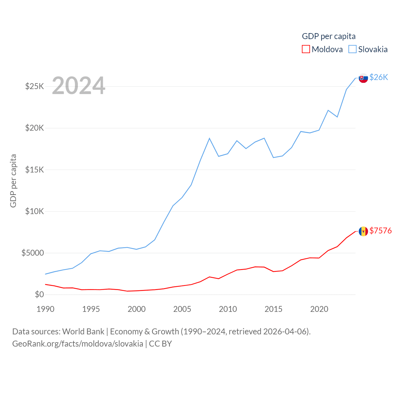 Data sources: World Bank | Economy & Growth (1990–2024, retrieved 2026-04-06).