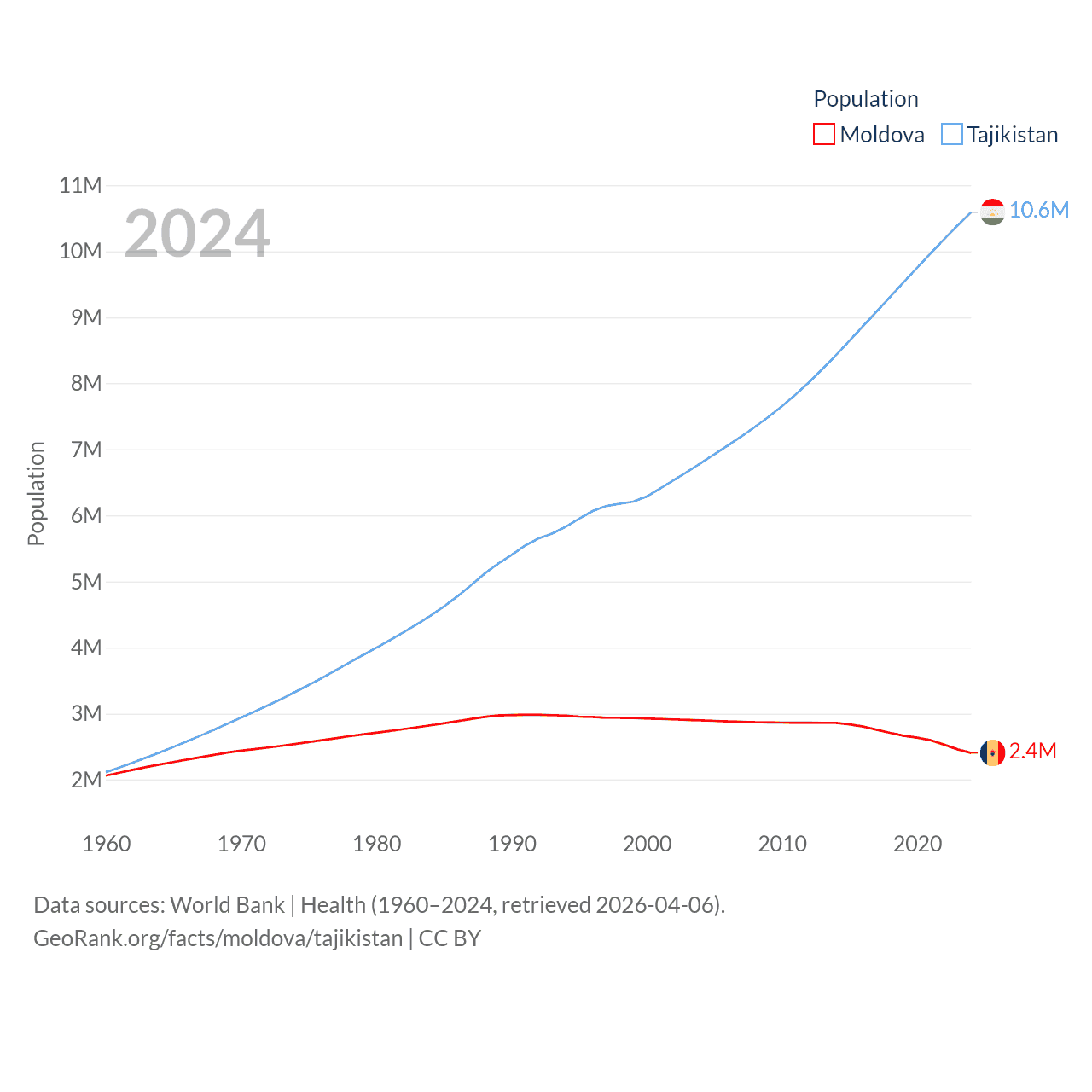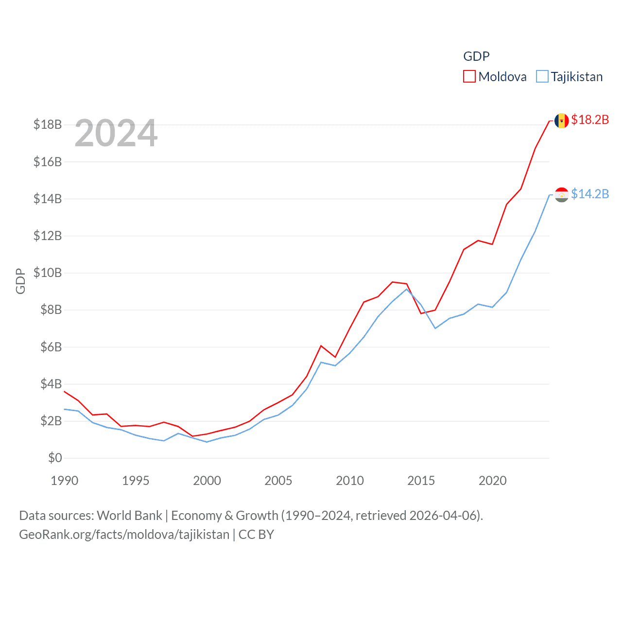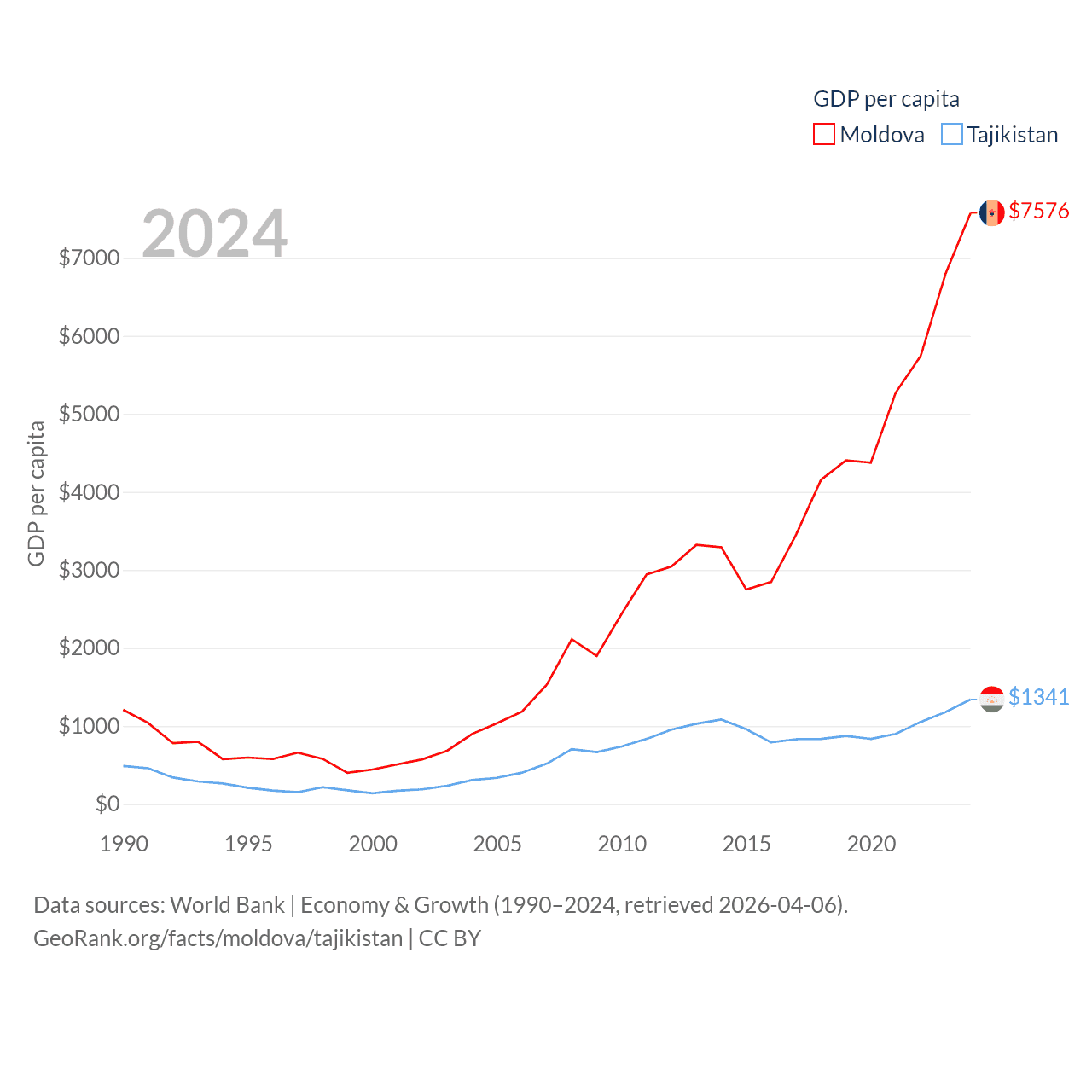 Data sources: World Bank | Economy & Growth (1990–2024, retrieved 2026-04-06).