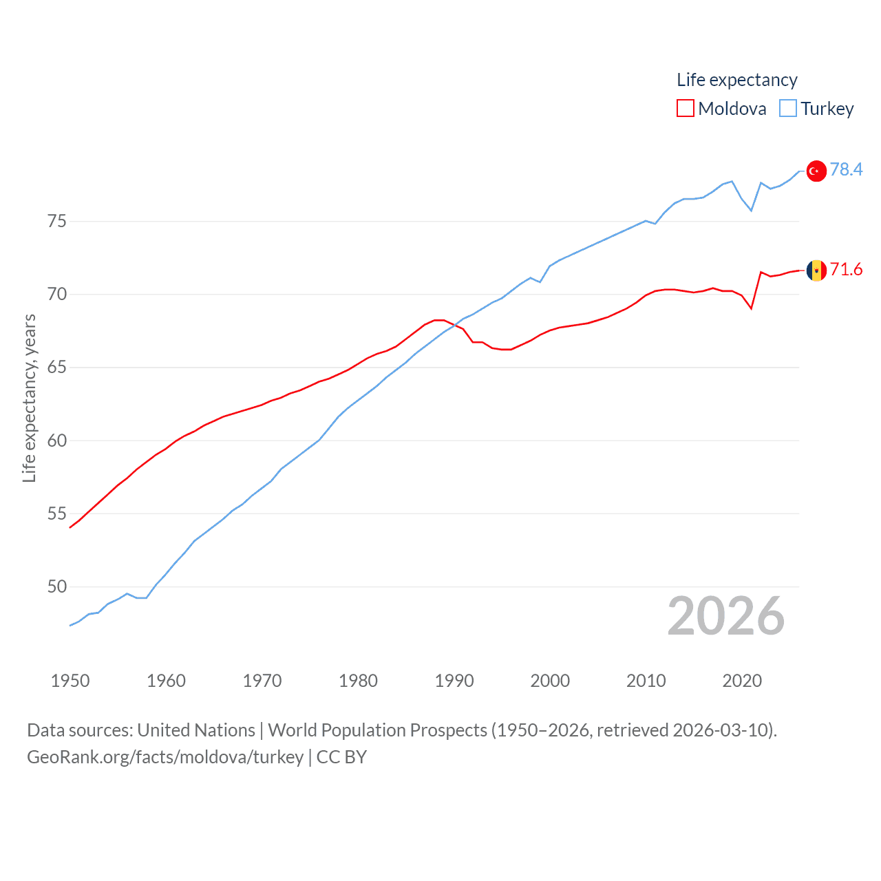 - United Nations | World Population Prospects (1950–2026, retrieved 2026-03-10)