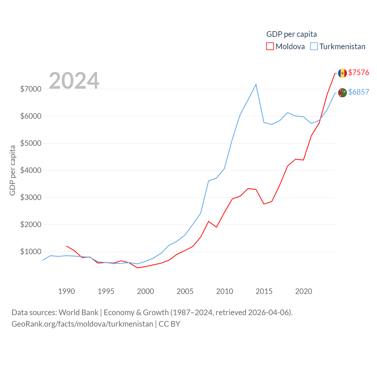 Data sources: World Bank | Economy & Growth (1987–2024, retrieved 2026-04-06).