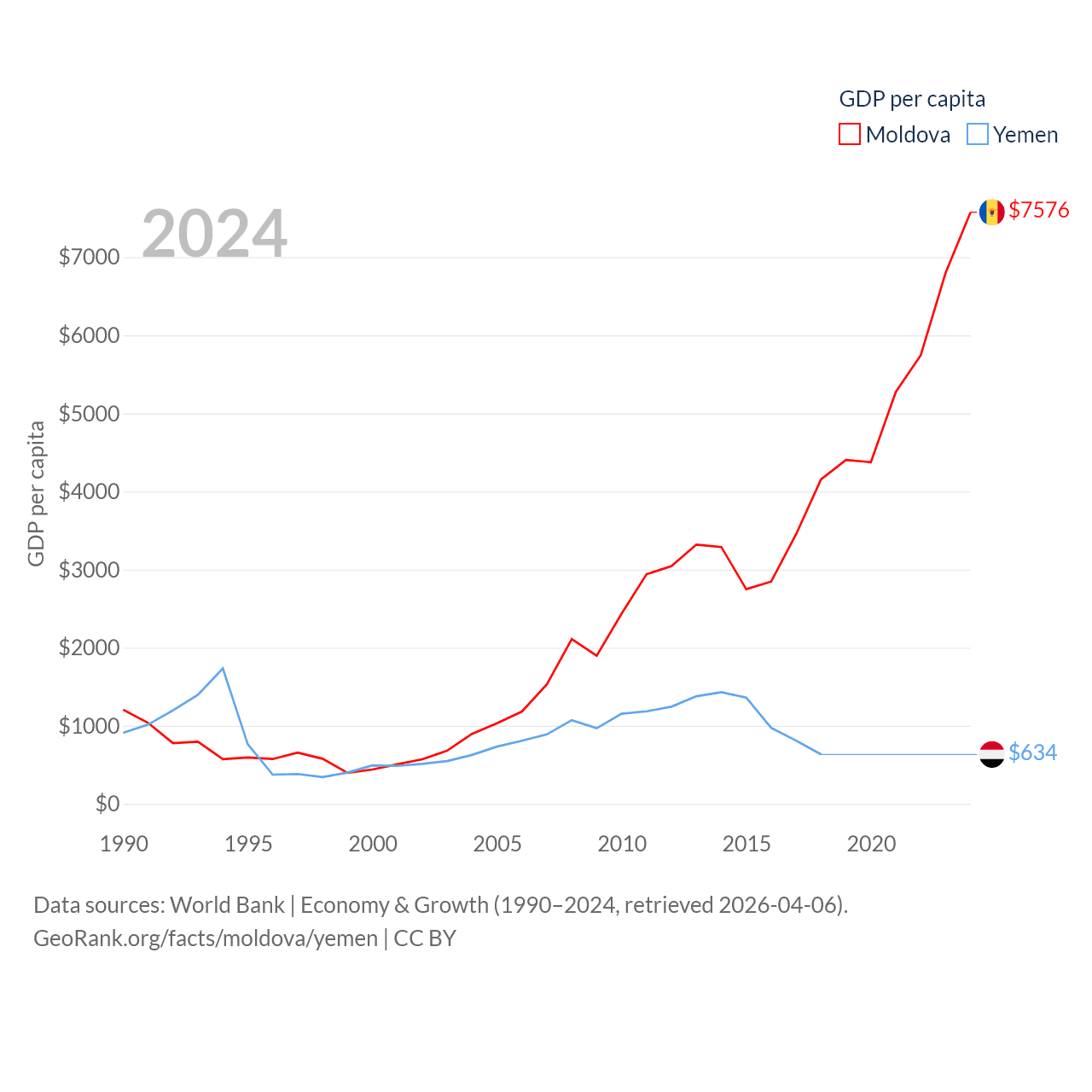 Data sources: World Bank | Economy & Growth (1990–2024, retrieved 2026-04-06).