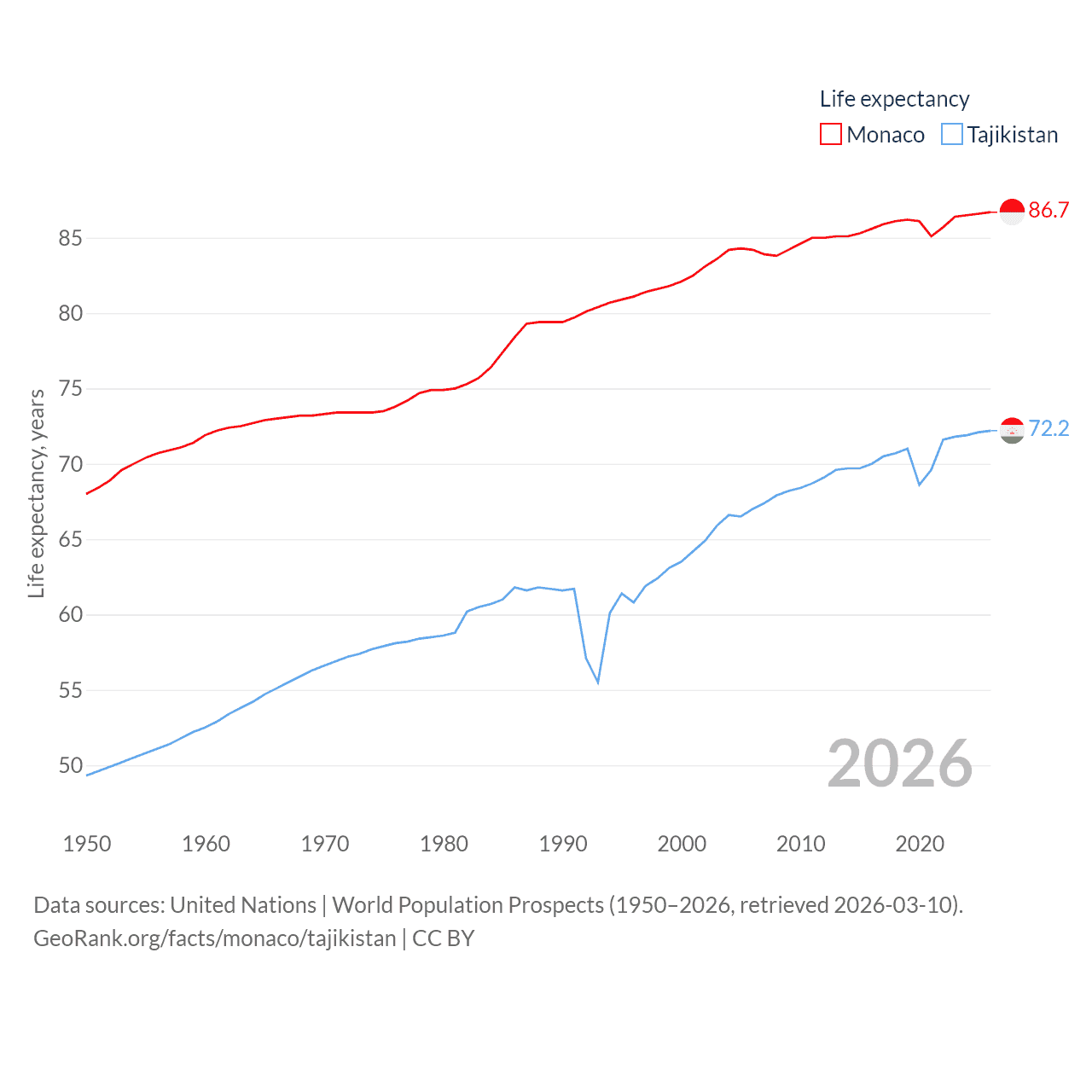 Monaco and Tajikistan: Comparison Charts