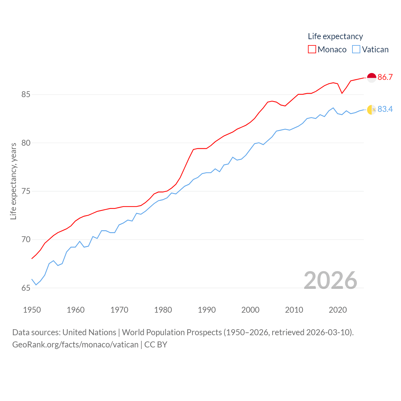 Monaco vs. Vatican life expectancy calculator