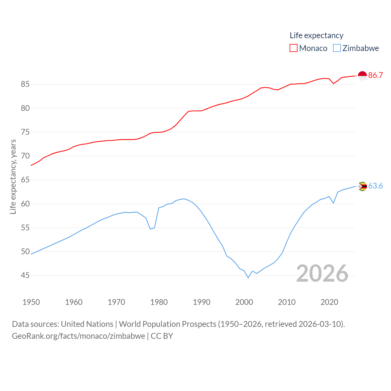 Monaco and Zimbabwe: Comparison Charts