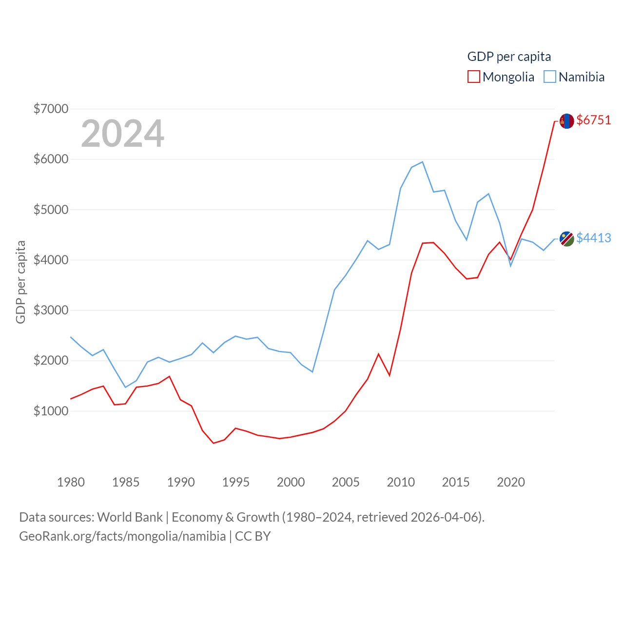 Data sources: World Bank | Economy & Growth (1980–2024, retrieved 2026-04-06).